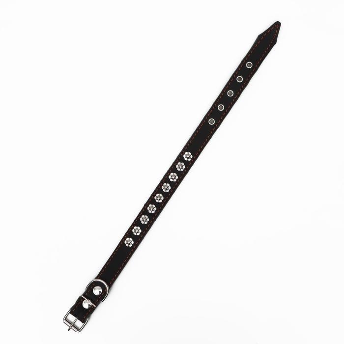 Ошейник кожаный на синтепоне, безразмерный, 54 х 2,5 см, ОШ 19-47 см, чёрный