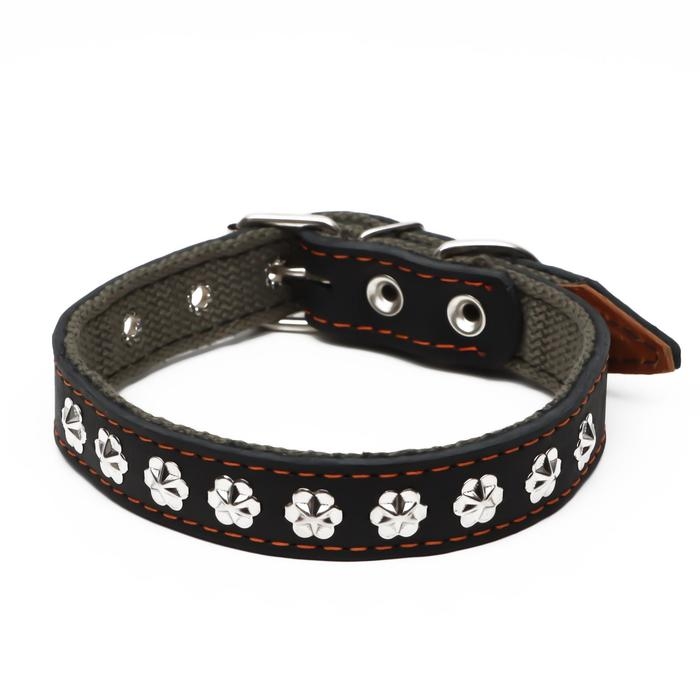 Ошейник комбинированный кожа/брезент, 54 х 2,5 см, украшенный, ОШ 35-45 см, черный