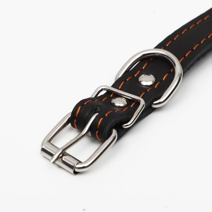 Ошейник кожаный однослойный безразмерный, 45 х 2 см, ОШ 18-39 см, чёрный