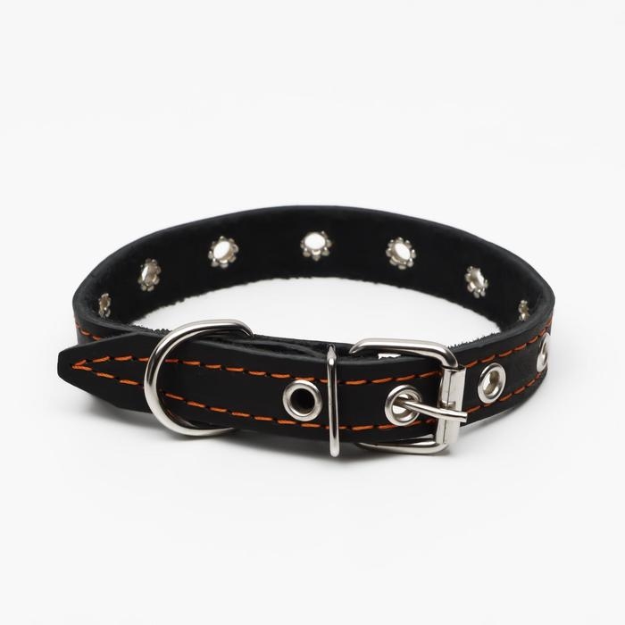 Ошейник кожаный на синтепоне украшенный, безразмерный, 47 х 2 см, ОШ 28-39 см, чёрный