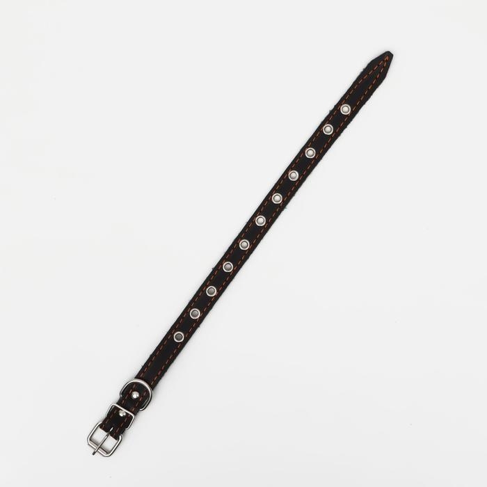 Ошейник кожаный на синтепоне украшенный, 45 х 2 см, ОШ 25-35 см, коричневый
