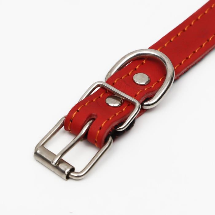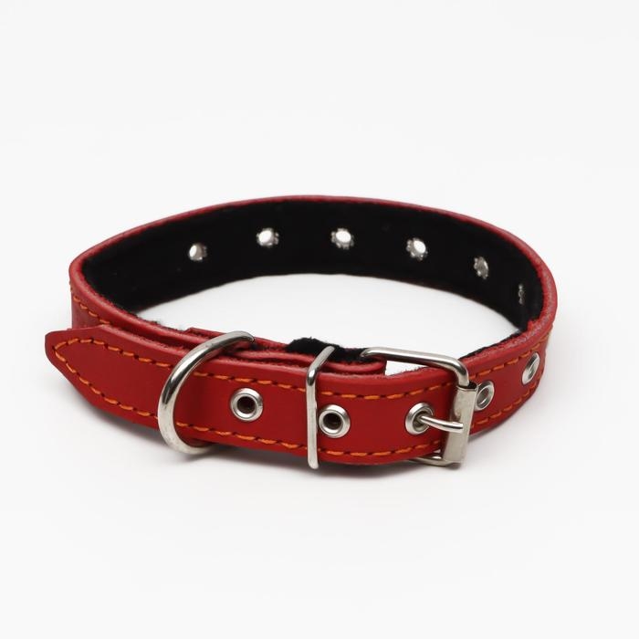 Ошейник кожаный на синтепоне, безразмерный, 45 х 2 см, ОШ 18-39 см, красный