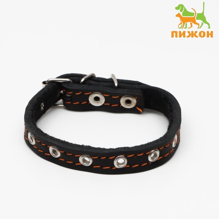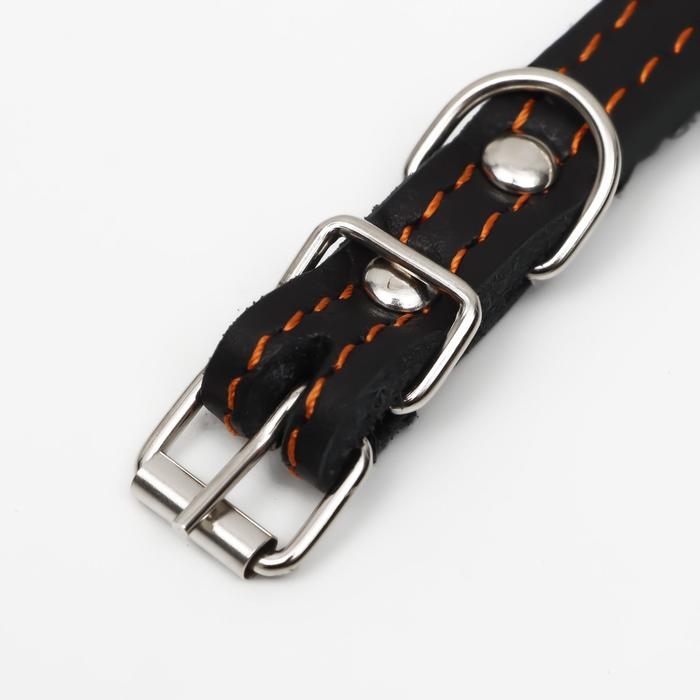 Ошейник кожаный на синтепоне, безразмерный, 37 х 1.5 см, ОШ 21-31 см, чёрный