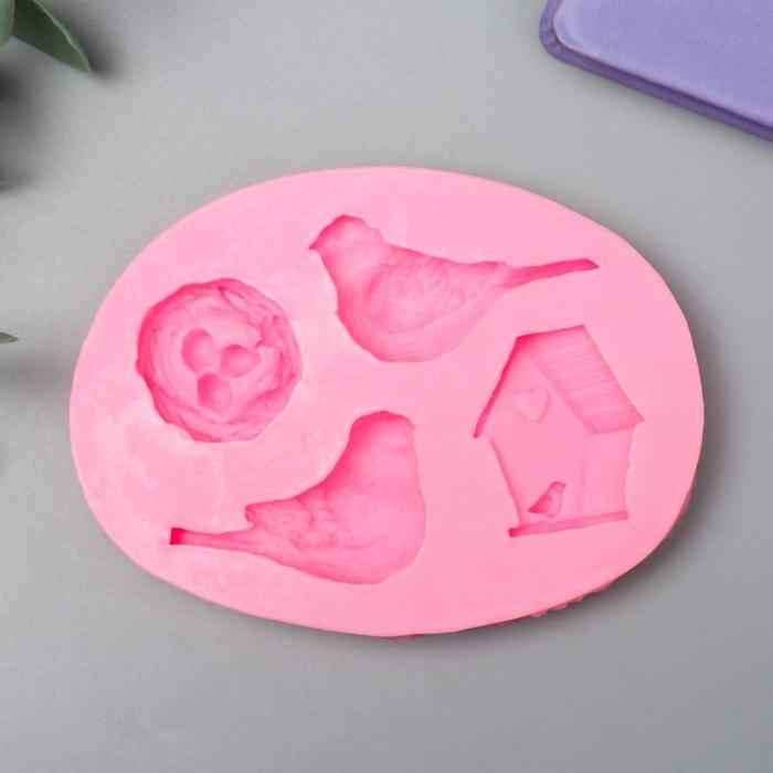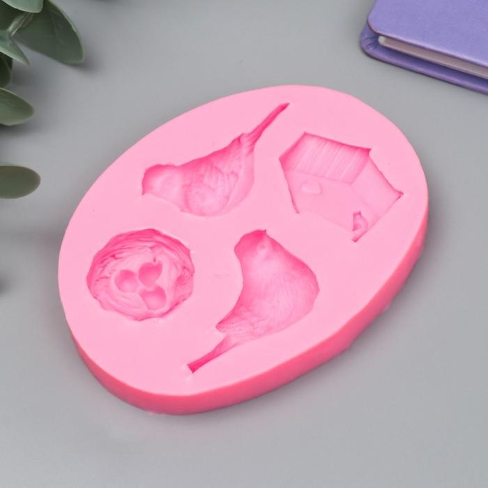 Молд силикон "Птицы с гнездом и скворечником" 4 предмета 1,4х7,1х9,4 см