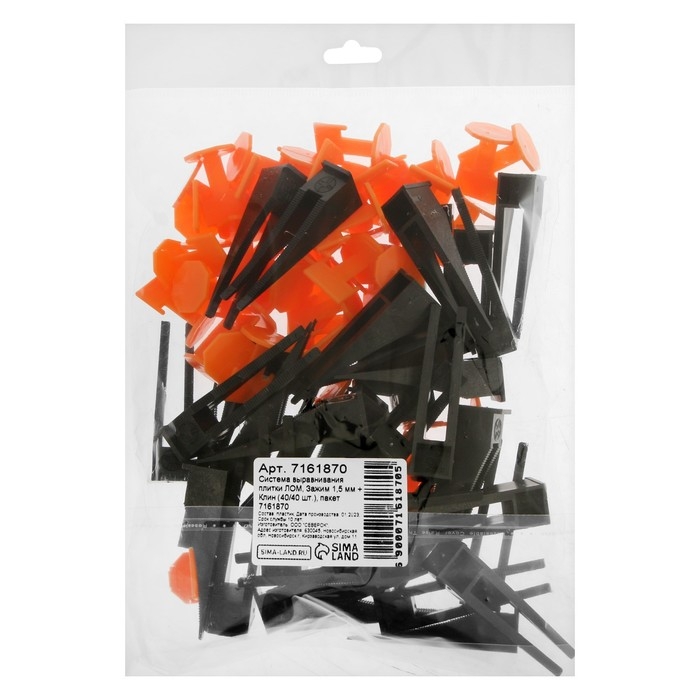 Система выравнивания плитки ЛОМ, зажим 1,5 мм + клин (40+40 шт), пакет