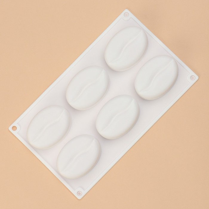 Форма для муссовых десертов и выпечки Доляна «Кофейные зёрна», силикон, 28,5×17×2,5 см, 6 ячеек (8×6 см), цвет белый