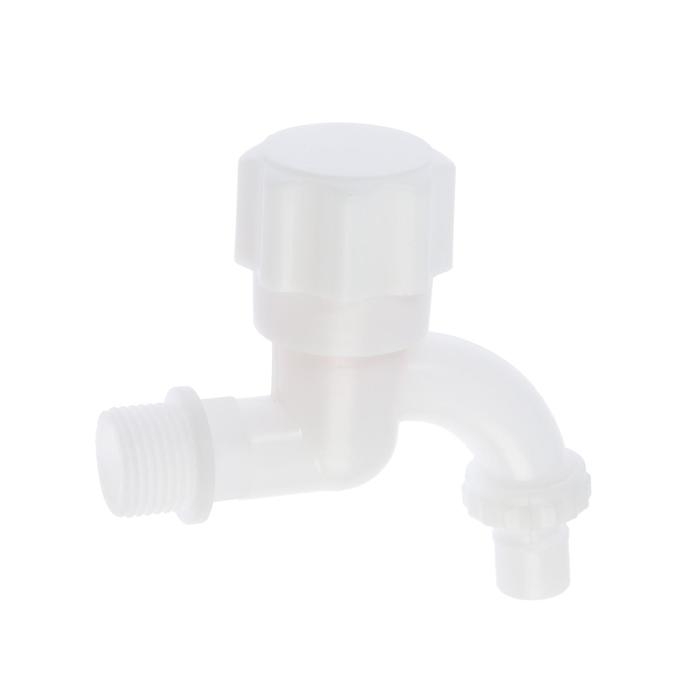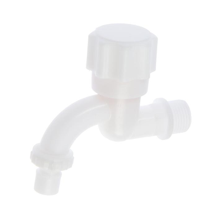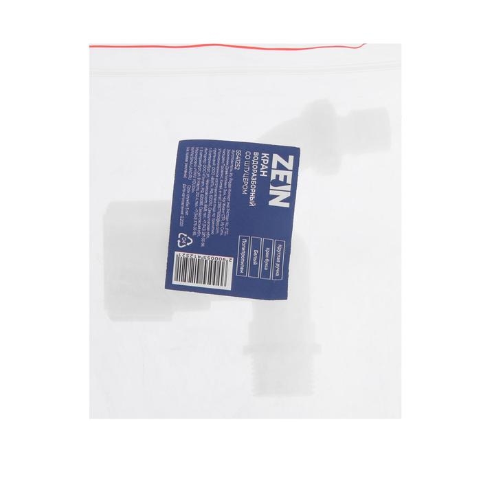 Кран водоразборный со штуцером ZEIN Z9820, 1/2", кругая ручка, PP, кран-букса, белый