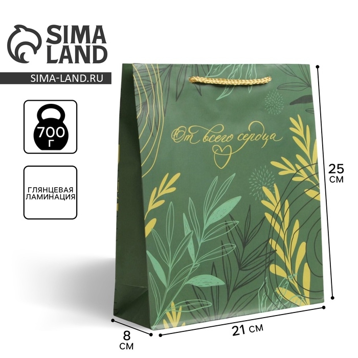 Пакет подарочный ламинированный, упаковка, Present with love, ML 21 х 25 х 8 см
