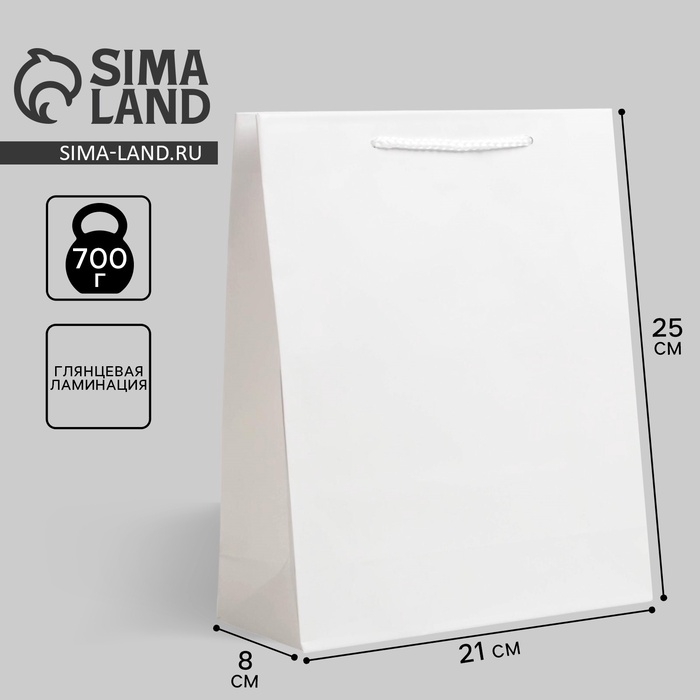 Пакет подарочный ламинированный, упаковка, «Белый», ML 21 х 25 х 8 см