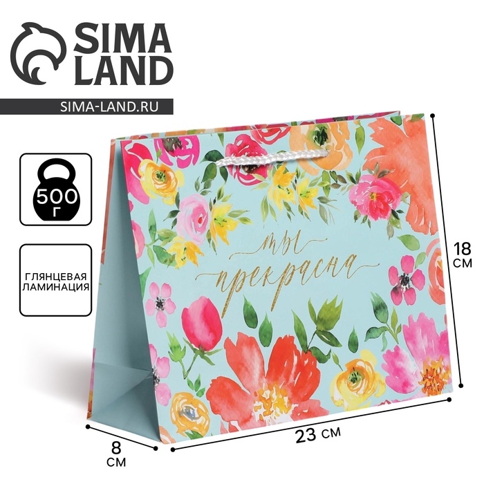Пакет подарочный ламинированный, упаковка, Beautiful, MS 23 х 18 х 8 см