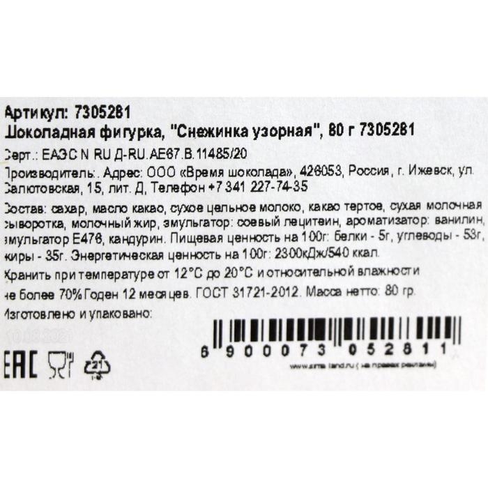Шоколадная фигурка "Снежинка узорная", 80 г