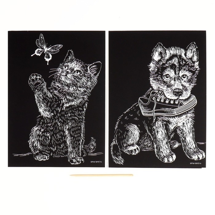Набор гравюр А5 «Котёнок и щенок» 2 шт., с металлическим эффектом «серебро»