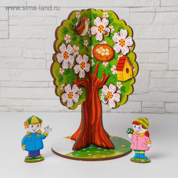 Дерево 4-х стороннее — каждая сторона это определенное время года, что делает игру еще более увлекательной и познавательной для детей.