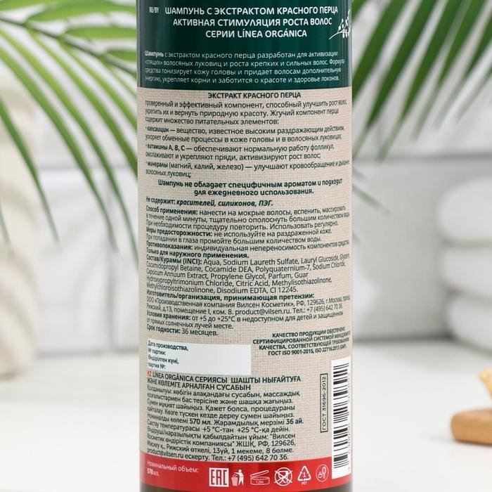 Шампунь VILSEN LINEA ORGANICA с экстрактом перца, активная стимуляция роста волос, 570 мл