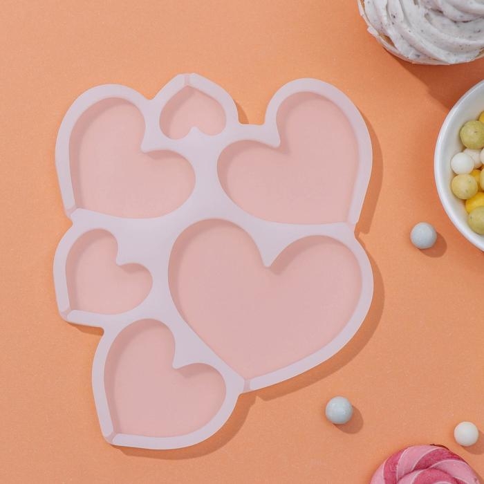 Форма для леденцов «Сердечки», силикон, 16×14×0,7 см, 6 ячеек, цвет белый