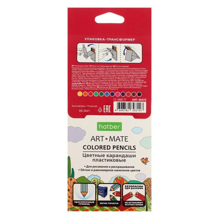 Карандаши цветные, 12 цветов, Mate, пластиковые, с европодвесом