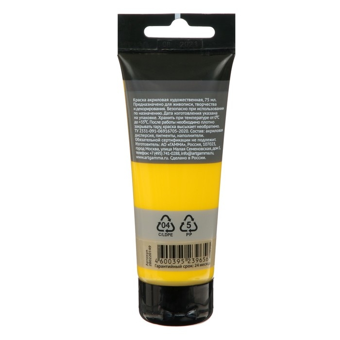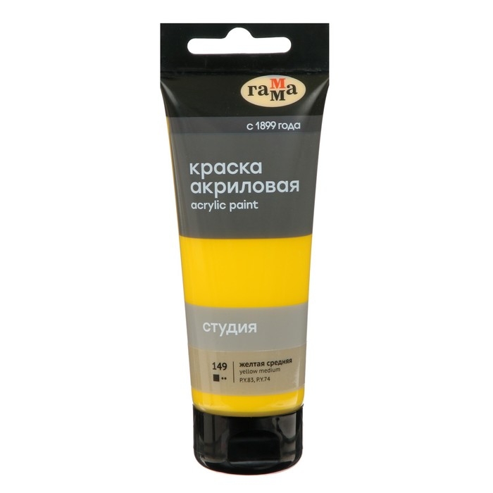Краска акриловая художественная туба 75 мл, Гамма "Студия" №149 жёлтая средняя