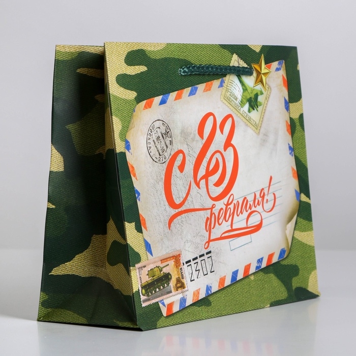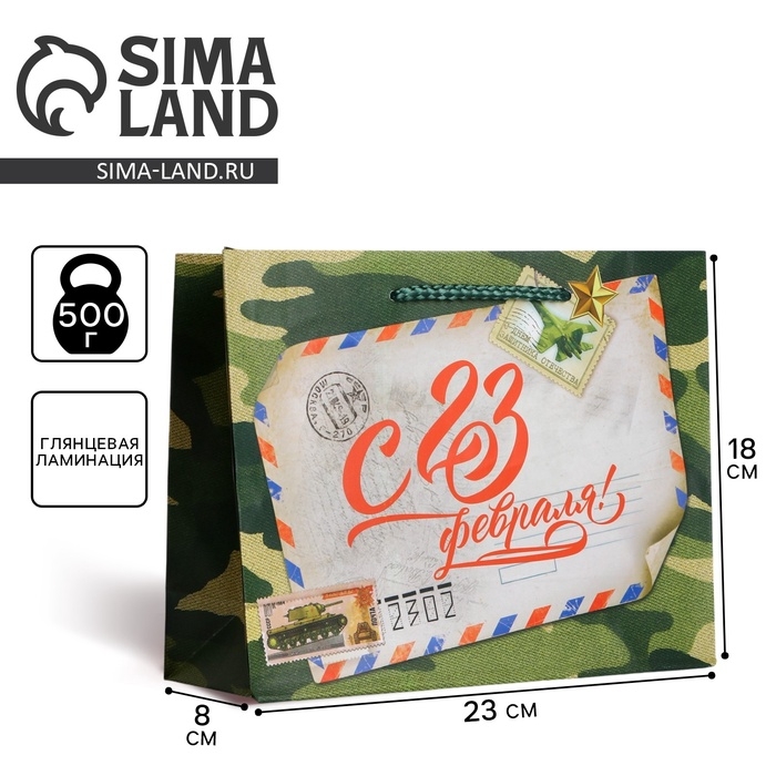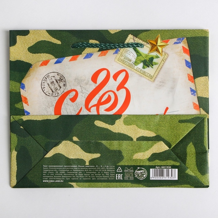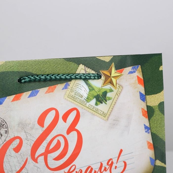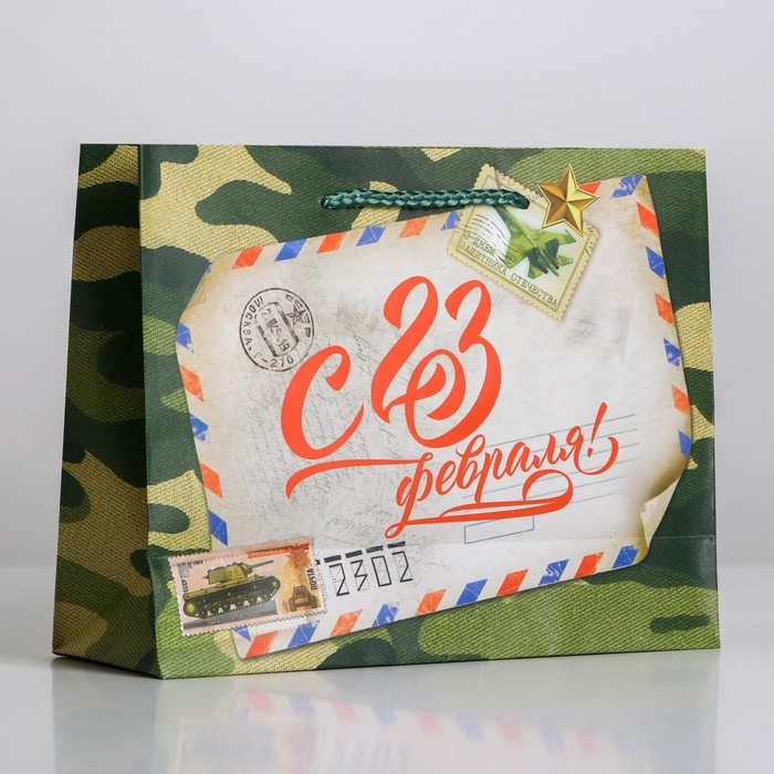Пакет подарочный ламинированный горизонтальный, упаковка, «Письмо защитнику», MS 23 х 18 х 8 см
