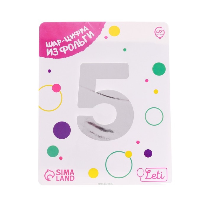Шар фольгированный 40" «Цифра 5», цвет серебро Slim