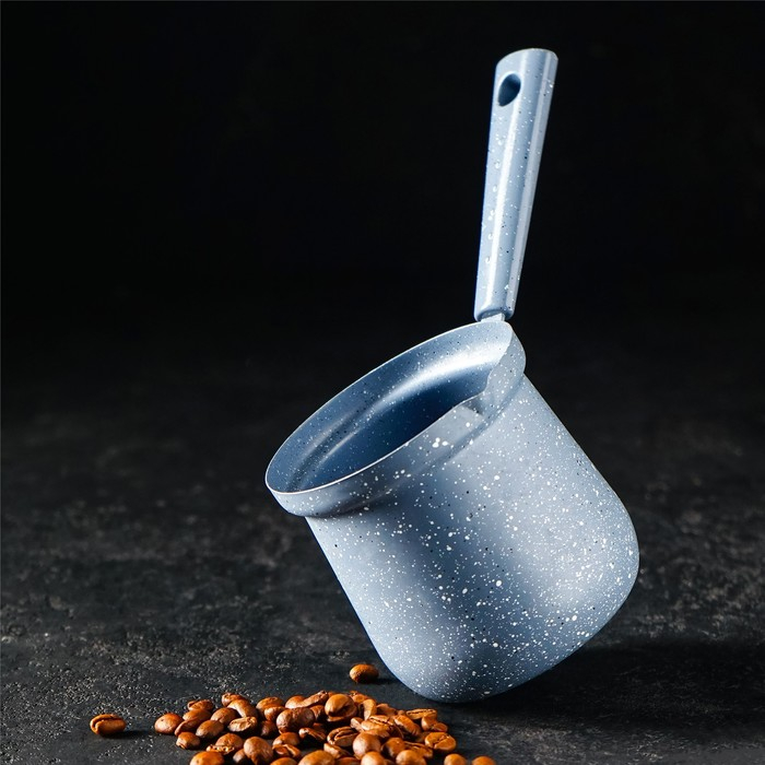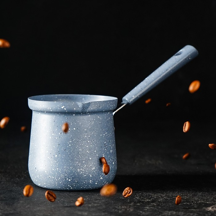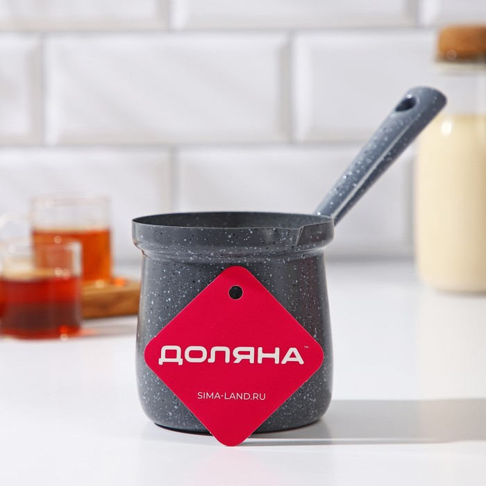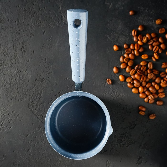 Турка Доляна «Мрамор грэй», 450 мл, d=9 см, 20×9×14 см, пластиковая ручка, антипригарное покрытие, индукция, цвет серый