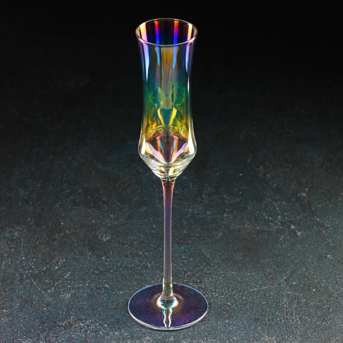 Бокал для шампанского стеклянный «Кира», 180 мл, 7×25,5 см, цвет перламутровый