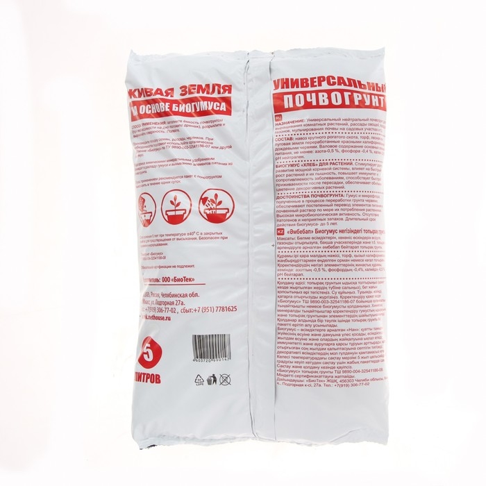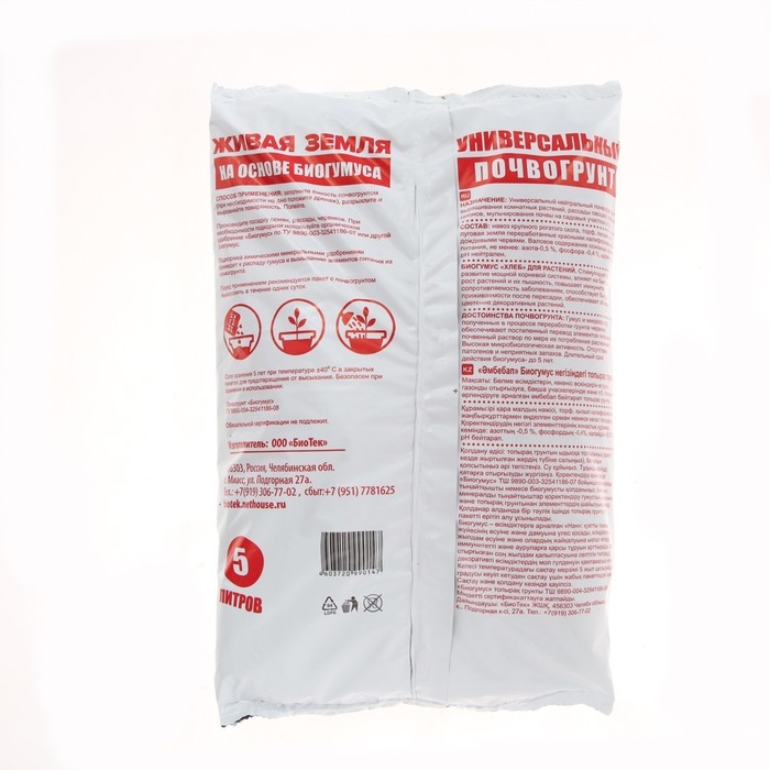 Наличие Биогумуса укрепляет иммунитет, снижает стрессовые состояния растений (особенно после пересадки), увеличивает приживаемость, повышает устойчивость к заболеваниям. Биогумус содержит стимуляторы роста в природной, естественной форме. Питательные вещества в Биогумусе не вымываются и действуют продолжительное время.Назначение: Универсальный, нейтральный почвогрунт рекомендованный для выращивания комнатных растений, рассады, мульчирования почвы на садовых участках, при посадке газонов и т.д.Состав: Полностью готовый к применению почвогрунт полученный переработкой навоза крупного рогатого скота и торфа красными Калифорнийскими червями. Основные элементы питания, не менее: азота-0,5%, фосфора - 0,4%, калия-0,5%. РН нейтрален. Способ применения: На дно емкости положите дренаж и заполните почвогрунтом. Разрыхлите и выровняйте поверхность. Произведите посадку. Полейте.