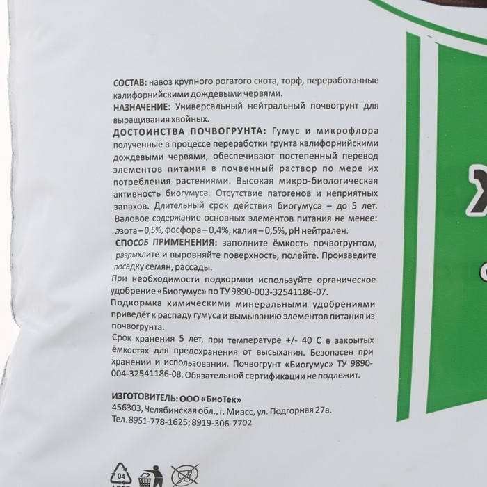 Почвогрунт на основе Биогумуса для Хвойных, Зеленый город, 20 л