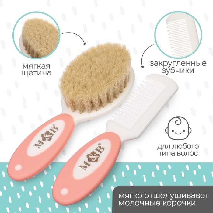 Набор детский для ухода за волосами: расческа и щетка с натуральной щетиной , цвет белый/розовый