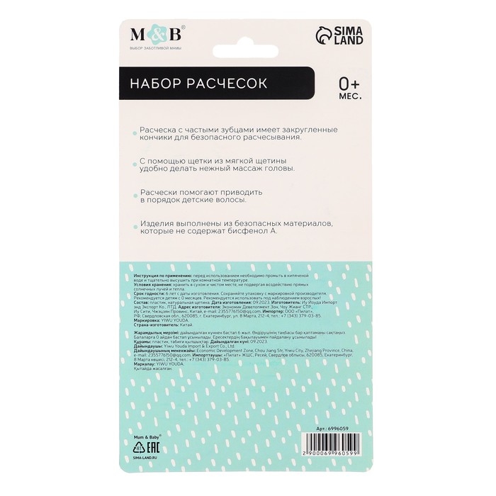 Расческа-щетка с мягкой, натуральной щетиной и удобная расческа с закругленными зубчиками предназначены для малышей с первых дней жизни. Мягкая пушистая щетка имеет удобную эргономичную ручку, улучшает кровообращение кожи головы, не царапая её. Нежный массаж расслабляет и успокаивает перед сном, а стимуляция волосяных луковиц ускоряет рост первых волос малыша. Щетка с мягким ворсом позволит пригладить волосики и придать им аккуратный вид. А с помощью расчески с частыми закругленными зубчиками удобно расчесывать запутавшиеся и скатавшиеся волосы. Изделия изготовлены из безопасного материала - не содержат бисфенол А.