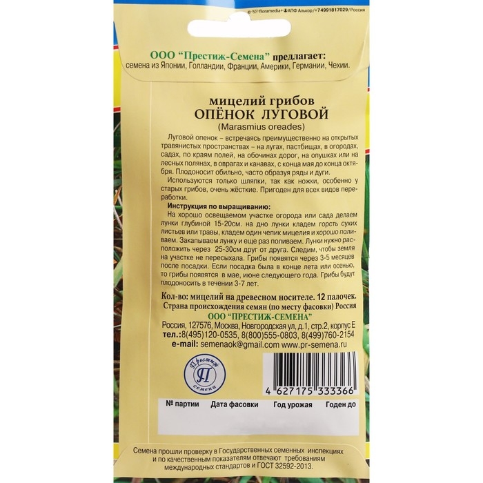 Мицелий Опенок "Луговой", 12 палочек