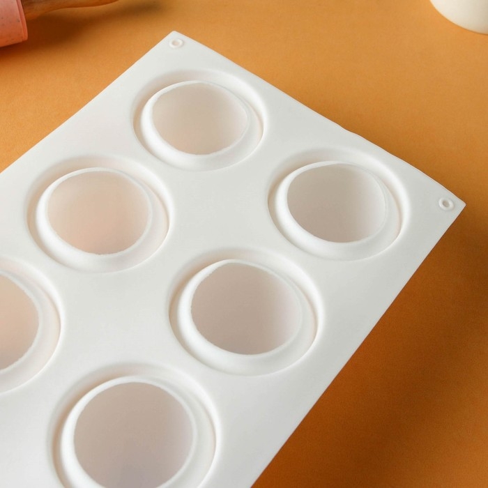 Форма для муссовых десертов и выпечки Доляна «Кристалл», 29,5×17×3,5 см, 6 ячеек (d=6,5 см), цвет белый