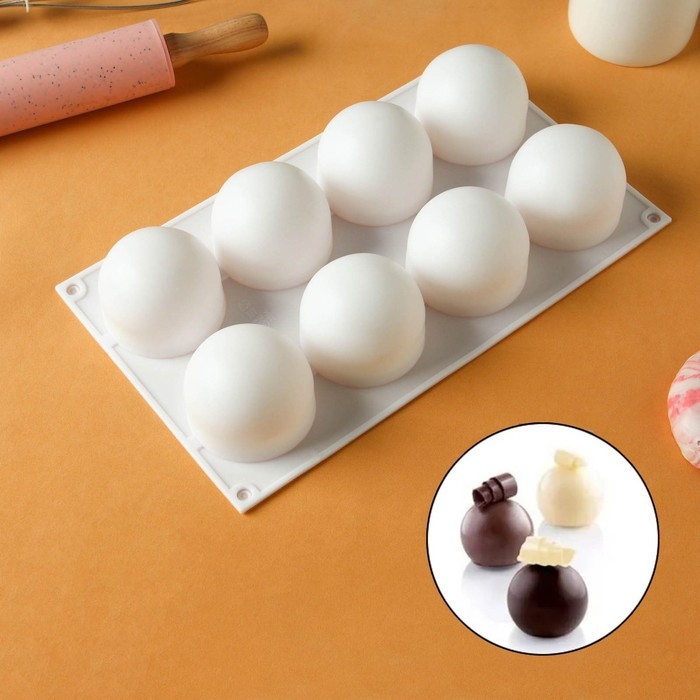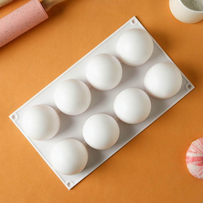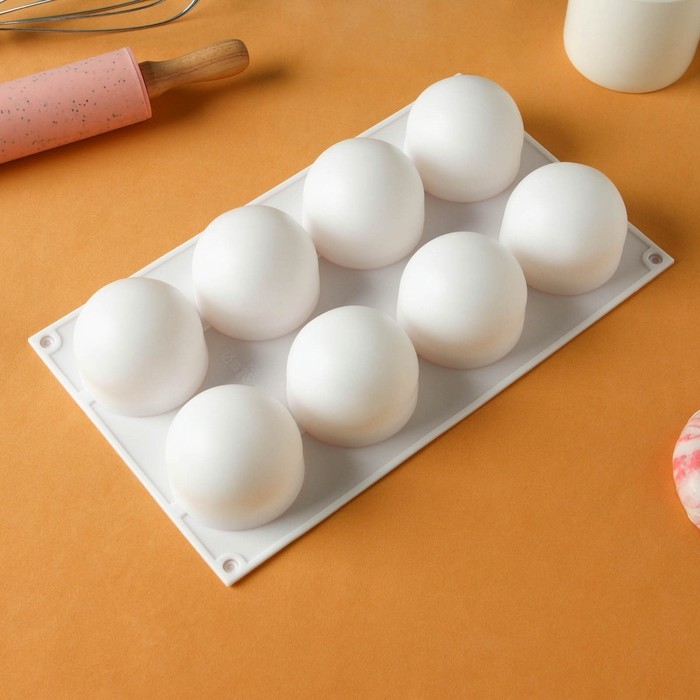Форма для муссовых десертов и выпечки KONFINETTA «Шарики», 29,7×17,4×3,7 см, 8 ячеек, цвет белый