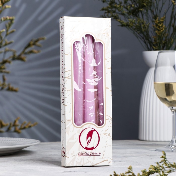 Набор свечей античных, 2,3х 24,5 см, 5 ч, 55 г, 4 штуки, сиреневая
