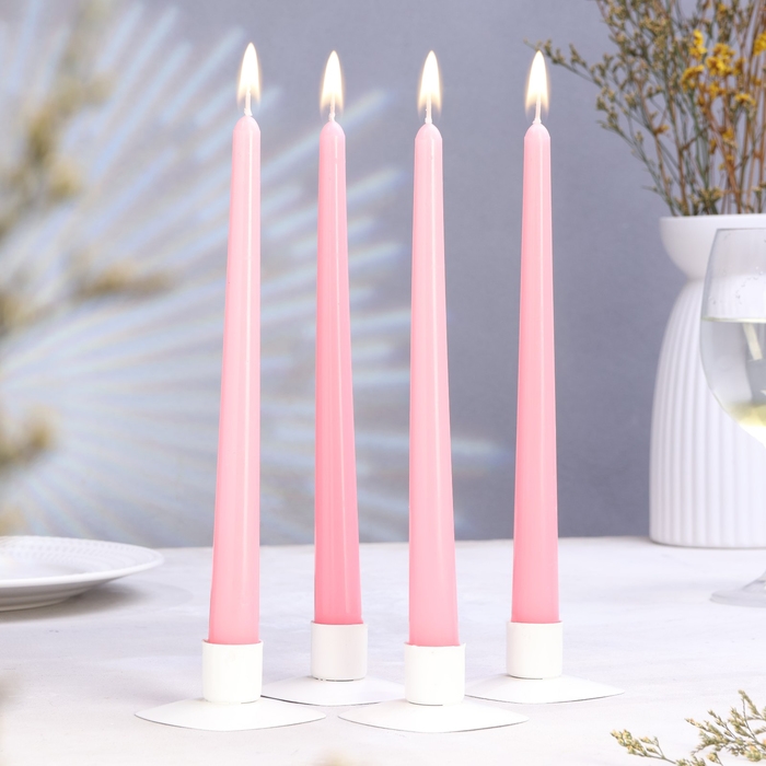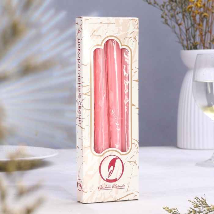 Набор свечей античных, 2,3х 24,5 см, 5 ч, 55 г, 4 штуки, светло-розовая