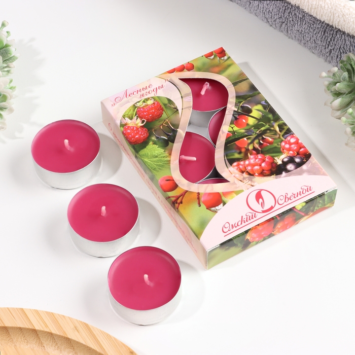 Набор чайных свечей ароматических "Ягоды", 3,8х1,6 см, 3,5 ч, 12 г, 6 штук