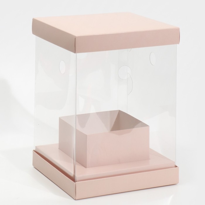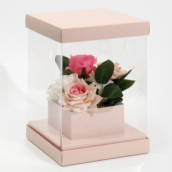Коробка подарочная для цветов с вазой и PVC окнами складная, упаковка, «Бежевая», 16 х 23 х 16 см
