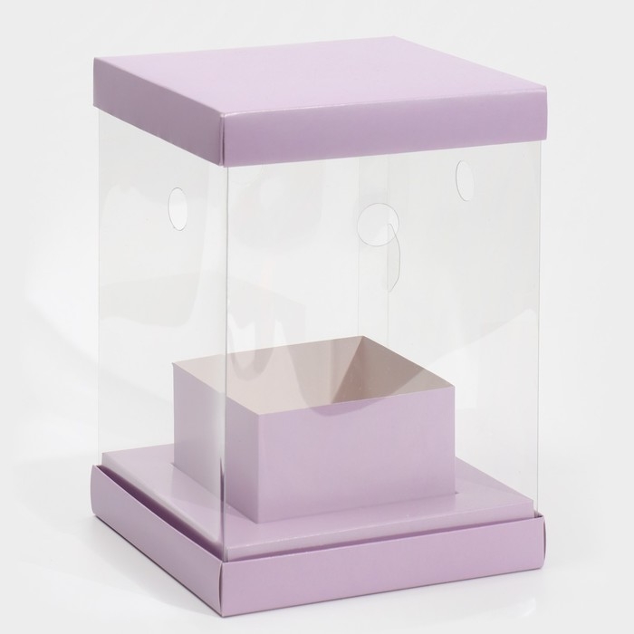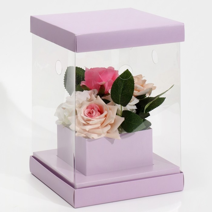 Коробка подарочная для цветов с вазой и PVC окнами складная, упаковка, «Лаванда», 16 х 23 х 16 см