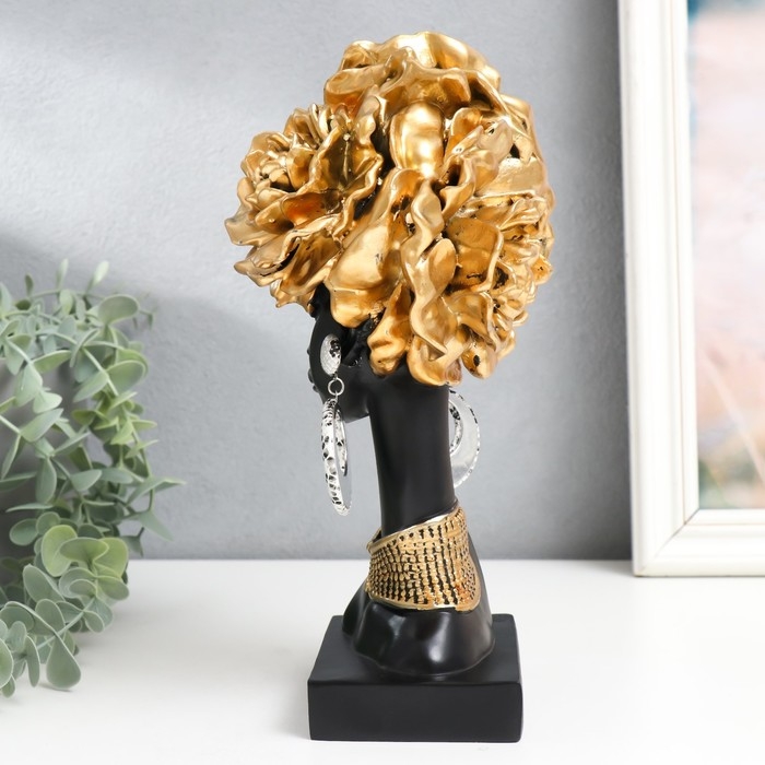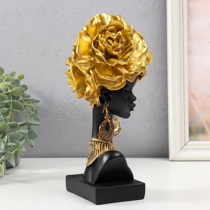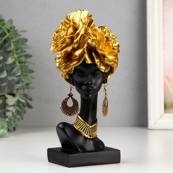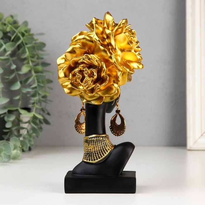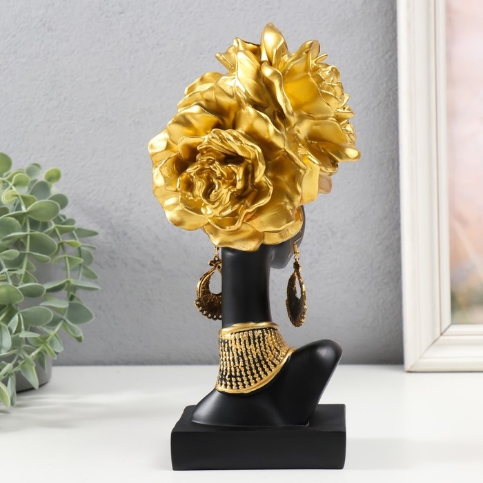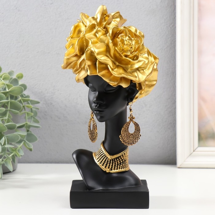 Сувенир полистоун "Африканка с золотыми розами в волосах, с ожерельем" чёрный 24х10х11 см