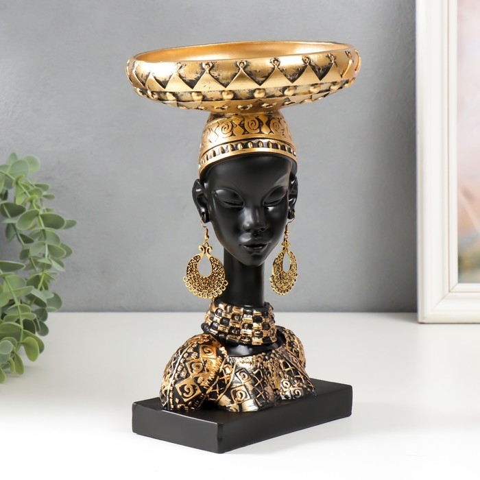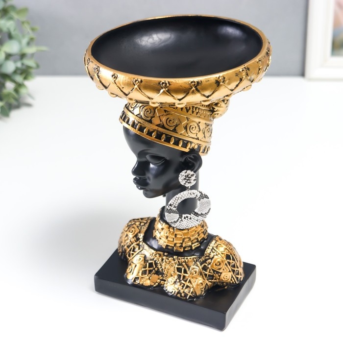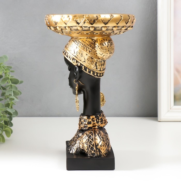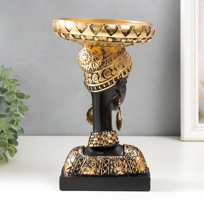 Сувенир полистоун подставка "Африканка в золотом уборе, с серьгами в ушах" 25х15х15 см