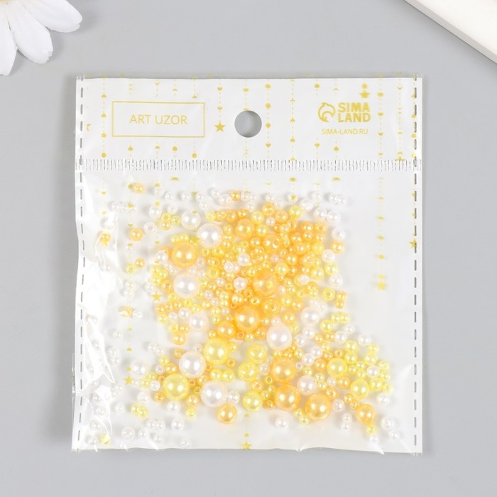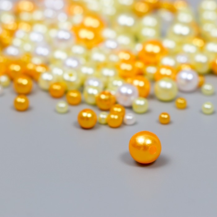 Бусины для творчества пластик "Круглые. Ассорти жёлтое" d=3-8 мм, набор 10 гр