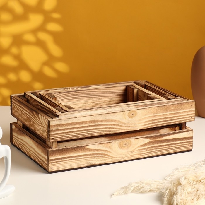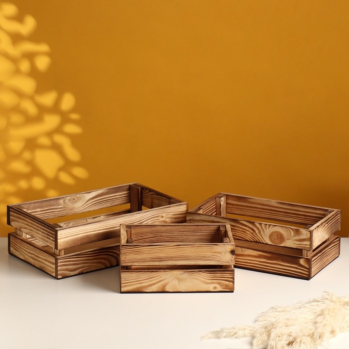 Набор ящиков деревянных "3 в 1" (30,5х18,5х10; 26х16х9,5; 21х13х9) см обожженный