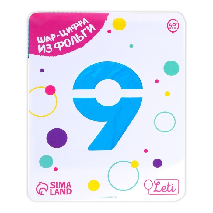 Шар фольгированный 40" «Цифра 9», цвет синий Slim
