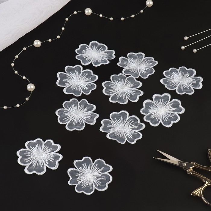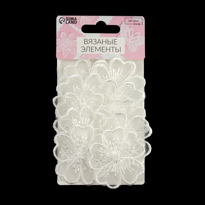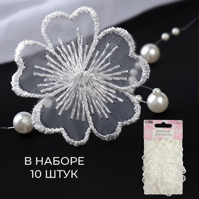 Вязаные элементы «Цветы», d = 4.5 см, 10 шт, цвет белый