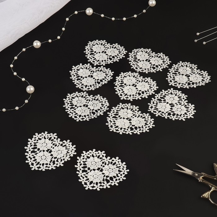 Вязаные элементы «Сердце из цветов», 8 × 8,5 см, 10 шт, цвет белый