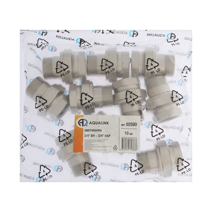 Американка AQUALINK, 3/4", внутренняя/наружная резьба, прямая, никелированная латунь