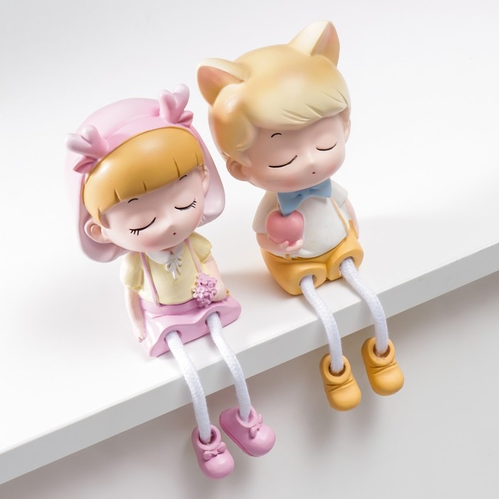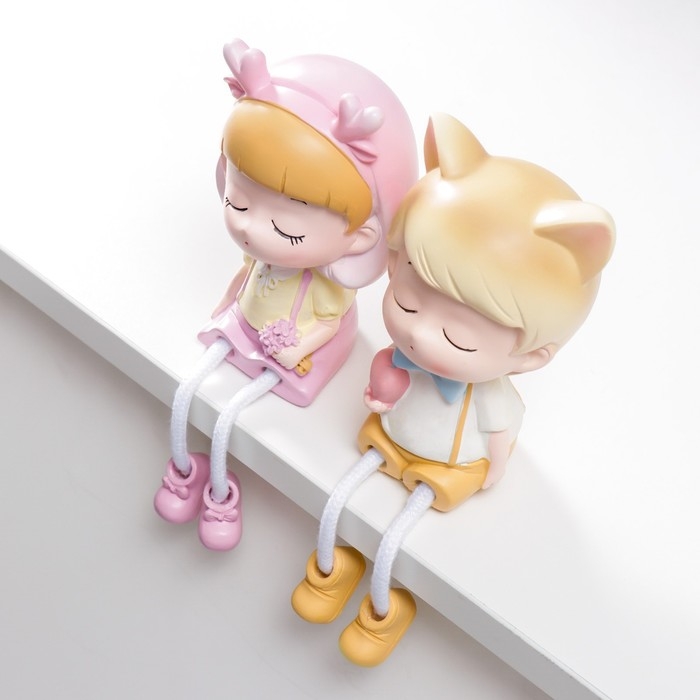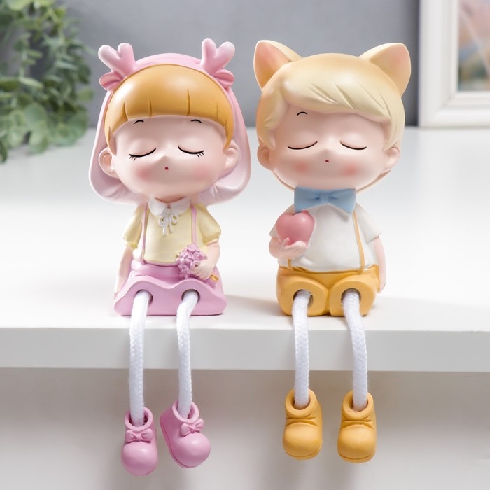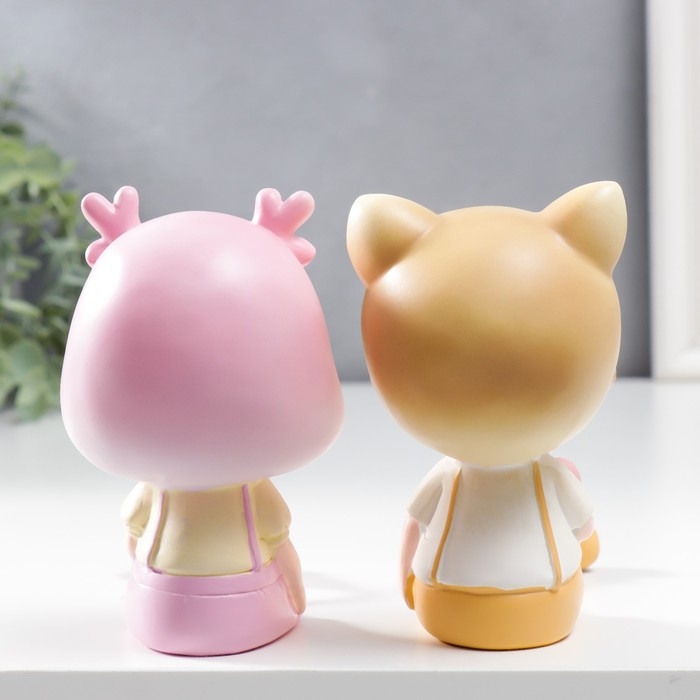 Сувенир полистоун "Малыш-котик/Малышка-олешка с длинными ножками" набор 2 шт 19х6х7,5 см