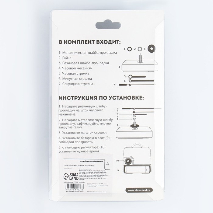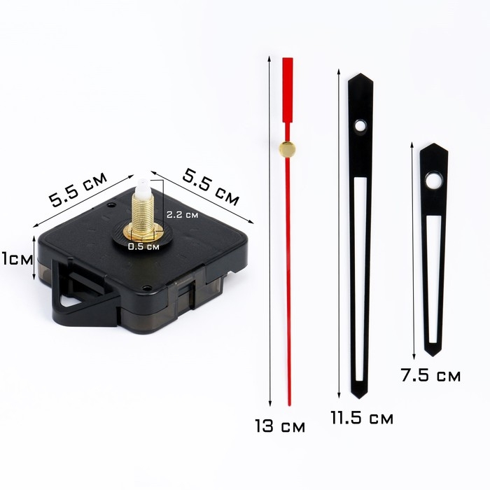 Часовой механизм со стрелками "Соломон-13", плавный ход, шток 22 мм, стрелки 75/115/125 мм