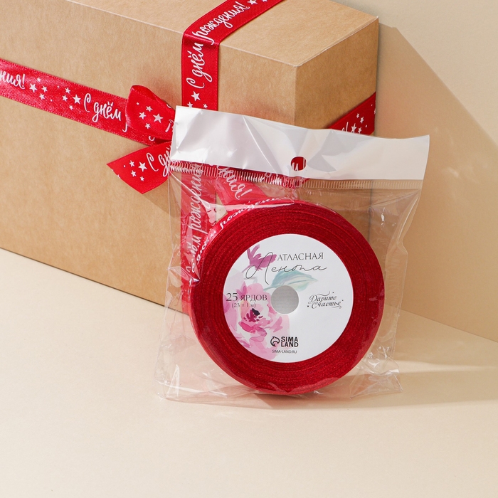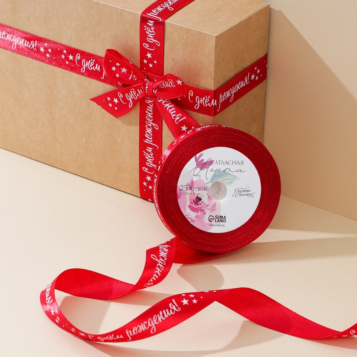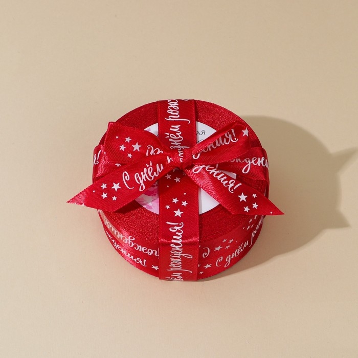 Лента атласная, подарочная упаковка, «С днём рождения», красная, 2 см х 22.5 м