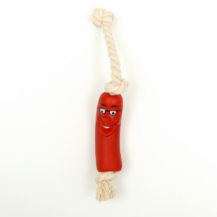 Игрушка на канате "Сосиска" для собак, 30 см (сосиска 14 см)