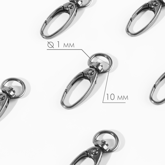 Карабин металлический, 38 × 12 мм / 10 × 1 мм, 6 шт, цвет чёрный никель